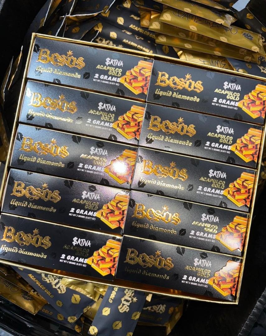 Enjoy a premium vaping experience with Besos Gold Edition 2g Disposables. A mix of top-selling flavors in one sleek, ready-to-use, gold-accented device.